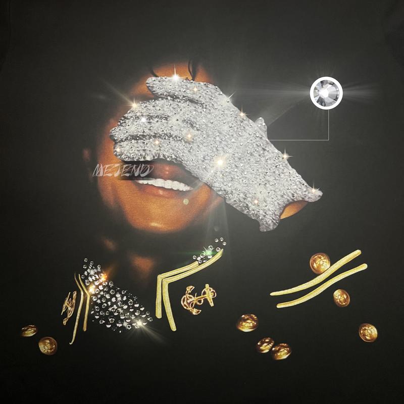 - Features a sparkly rhinestone diamond glove graphic for a bold, standout look.